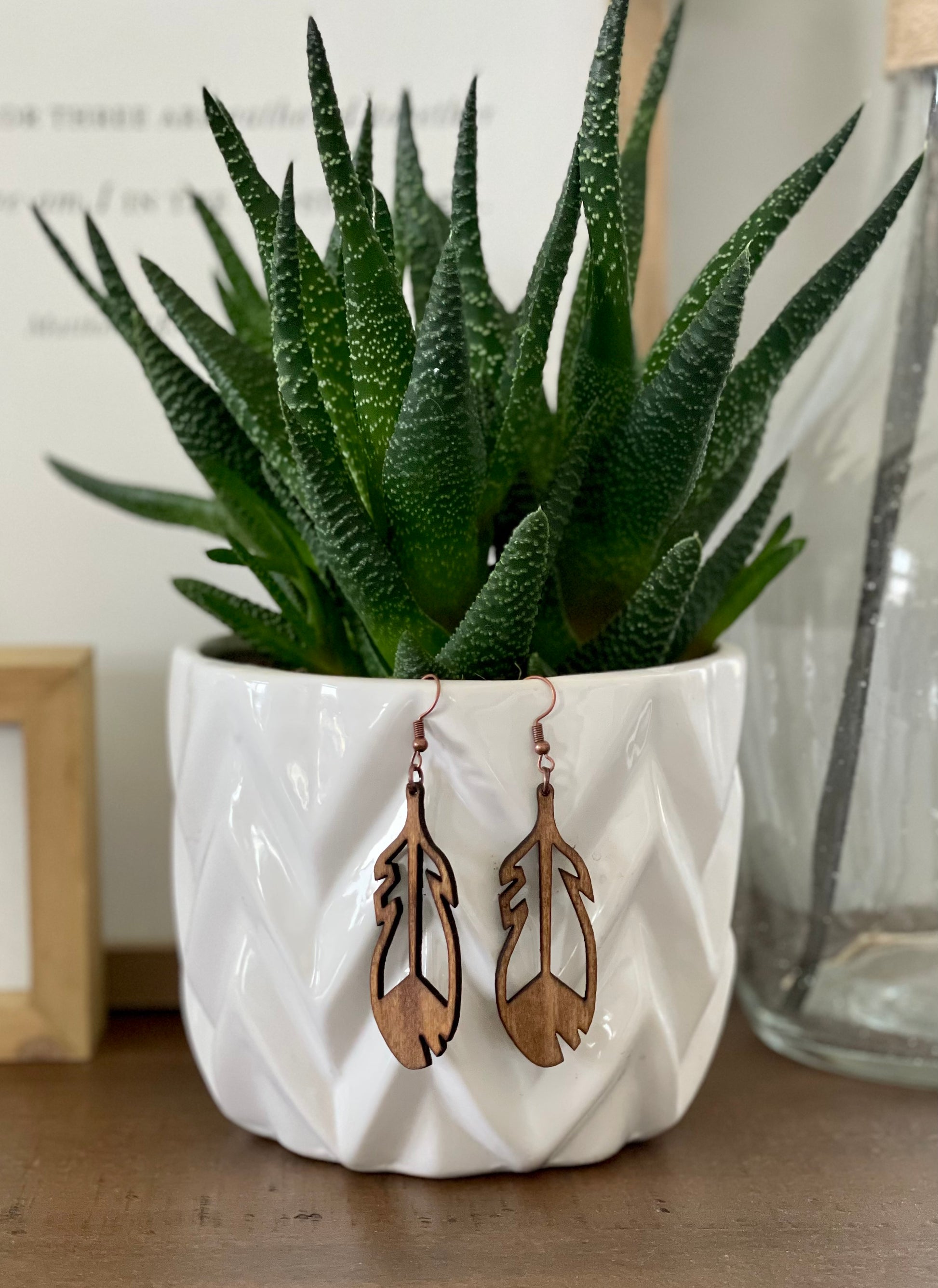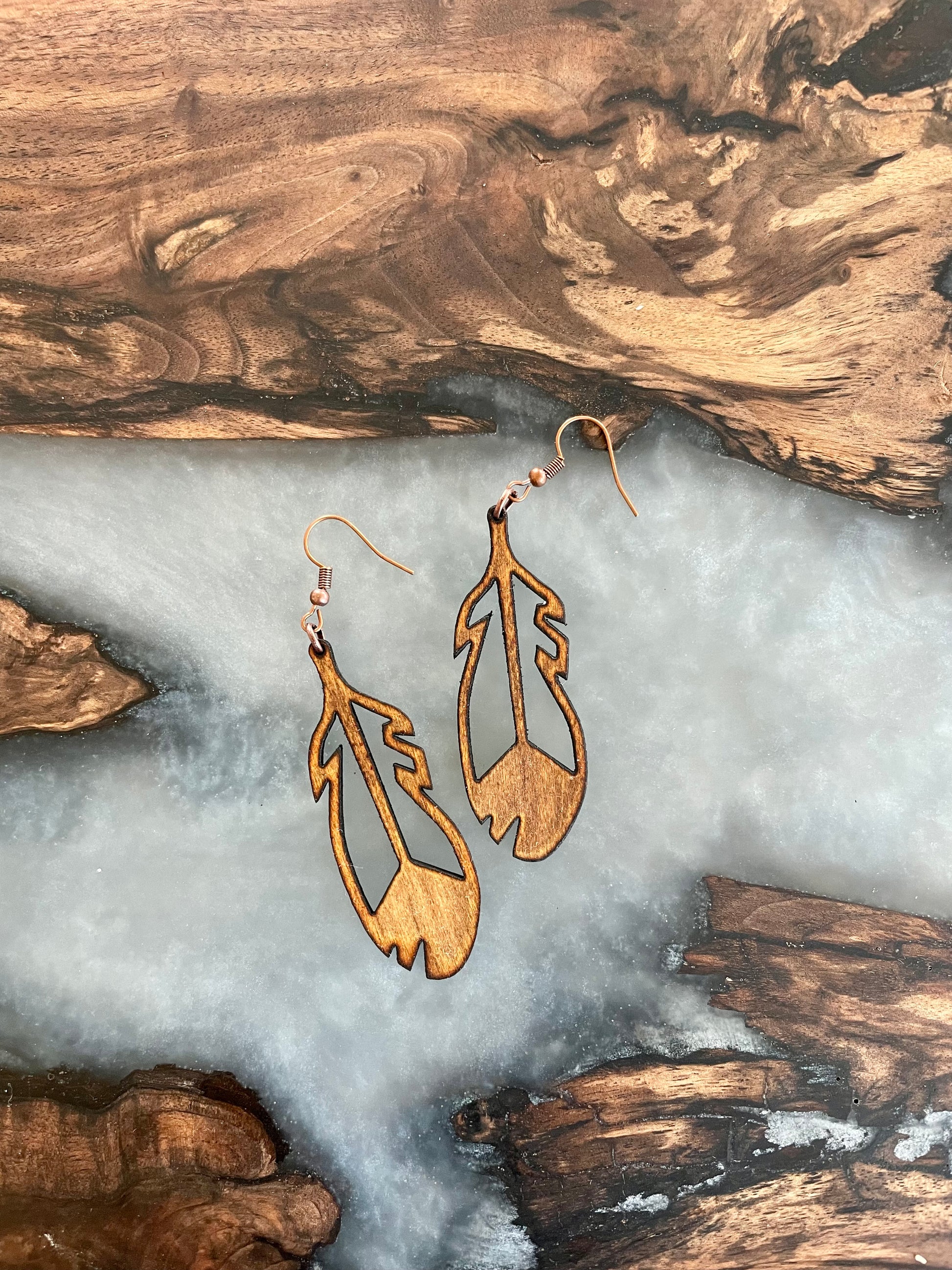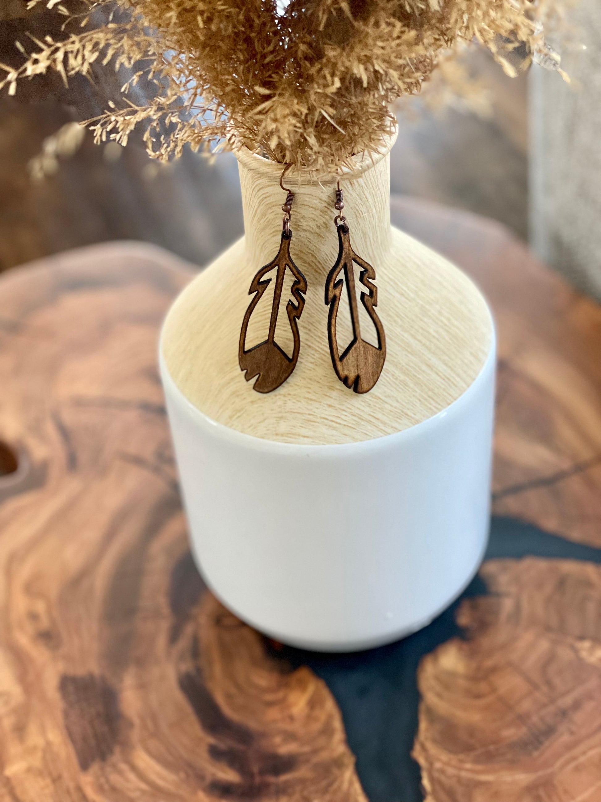 Beautiful, lightweight, brown toned, laser cut wooden earrings. Pair perfectly with any outfit, dressy or casual! Super lightweight and comfortable. Measures 2” x 3/4”