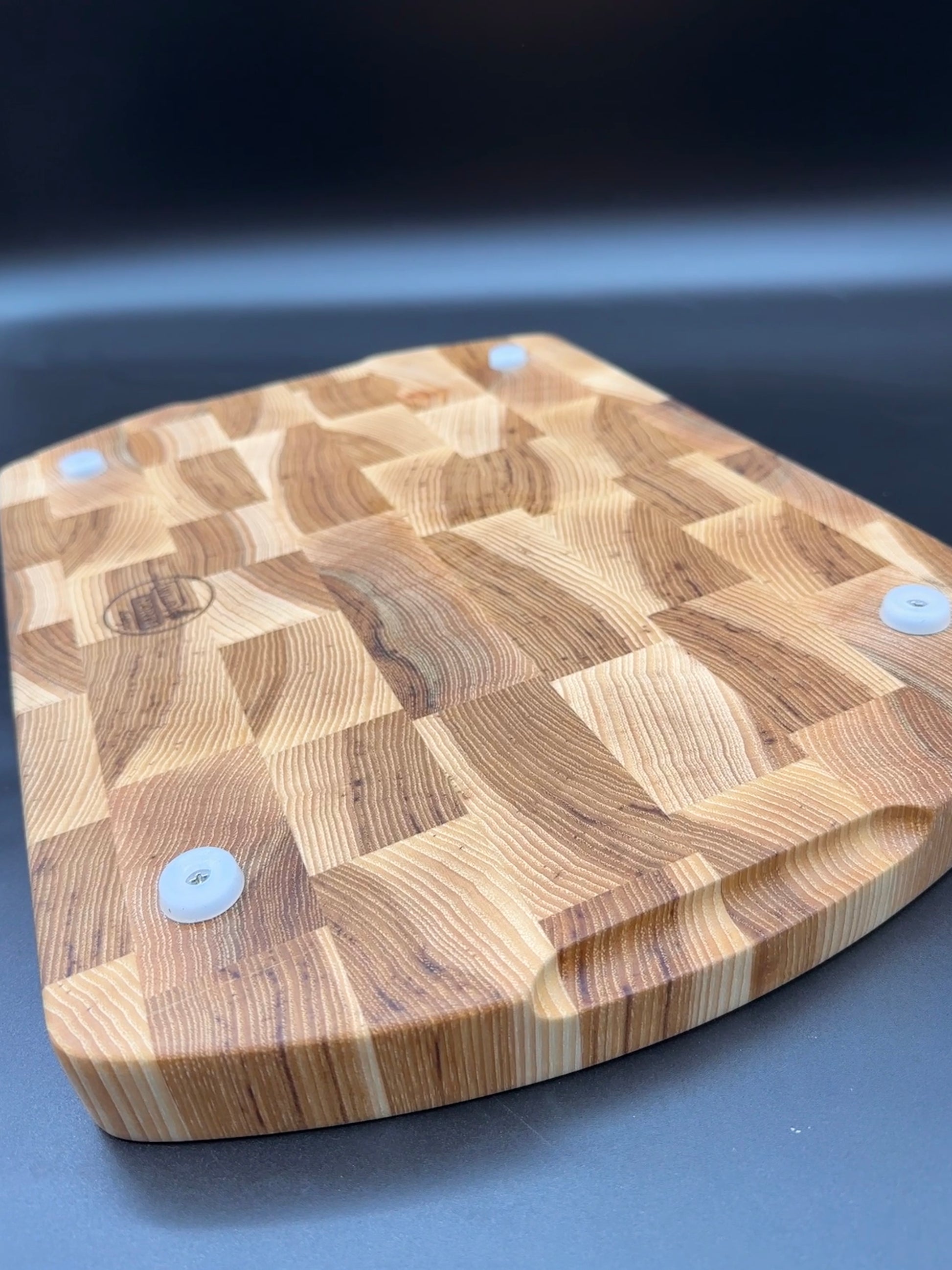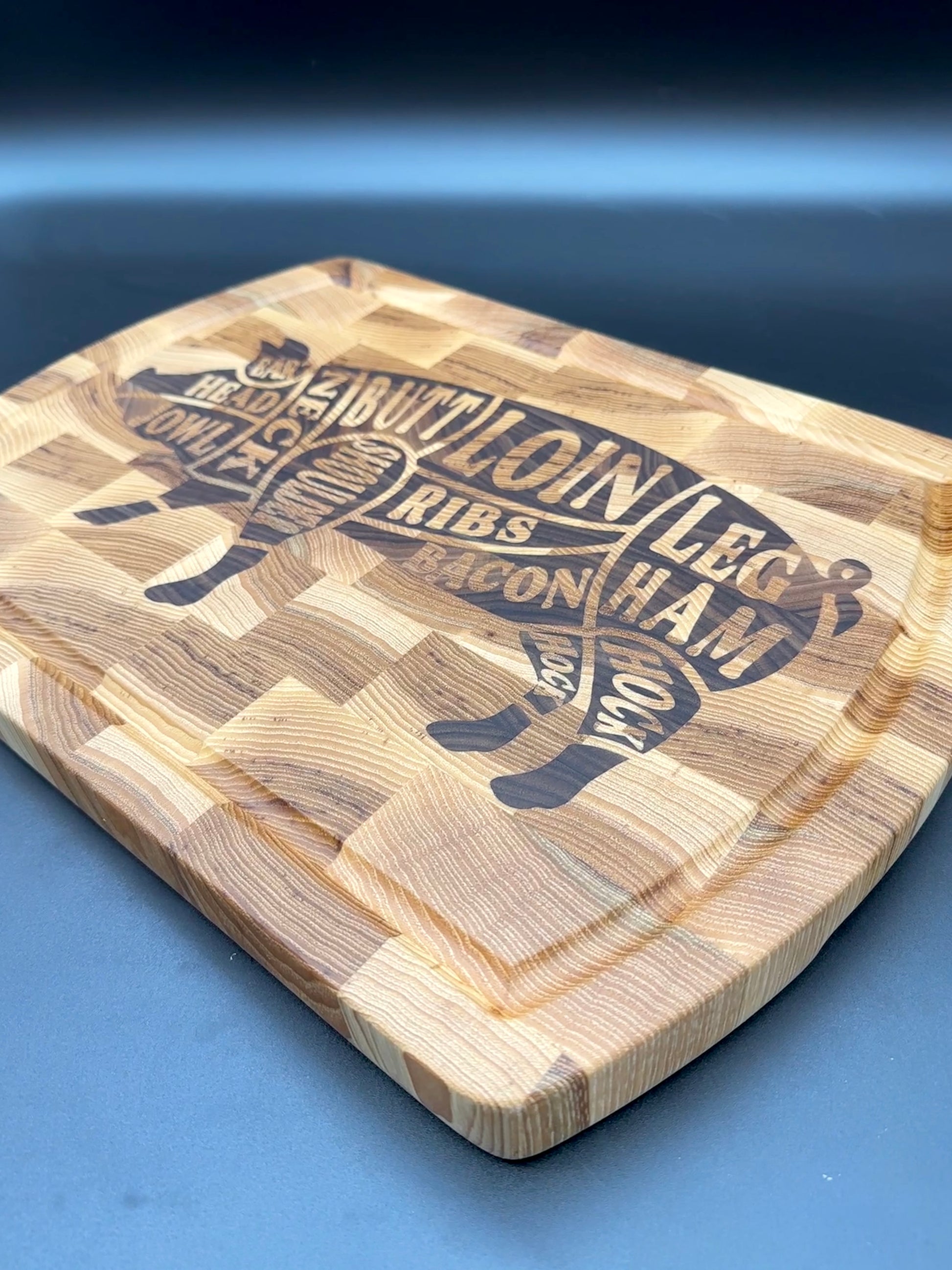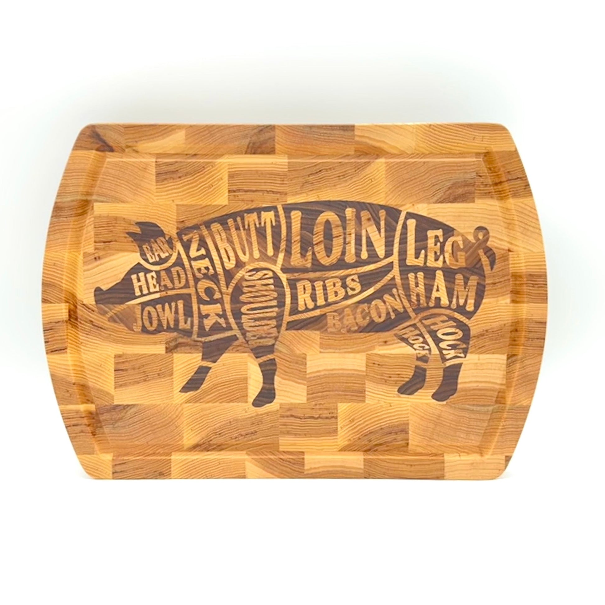 End Grain Hickory Cutting Board with Walnut Pig Inlay