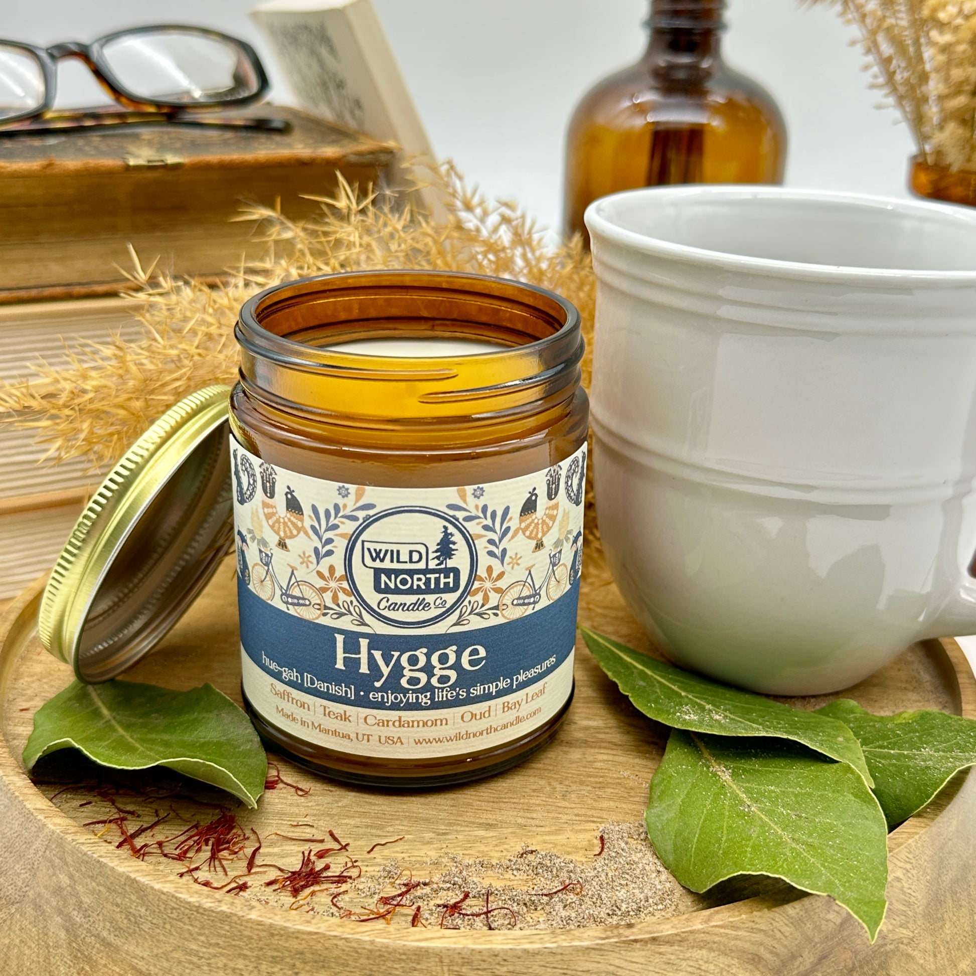 Experience the coziness of home with our new candle Hygge. Inspired by the Danish art of living, Hygge captures the warmth and comfort of the season in a jar. With its complex blend of rich saffron, earthy teak, fragrant bay leaf, warm oud, and spicy cardamom, Hygge creates an inviting atmosphere in your home.