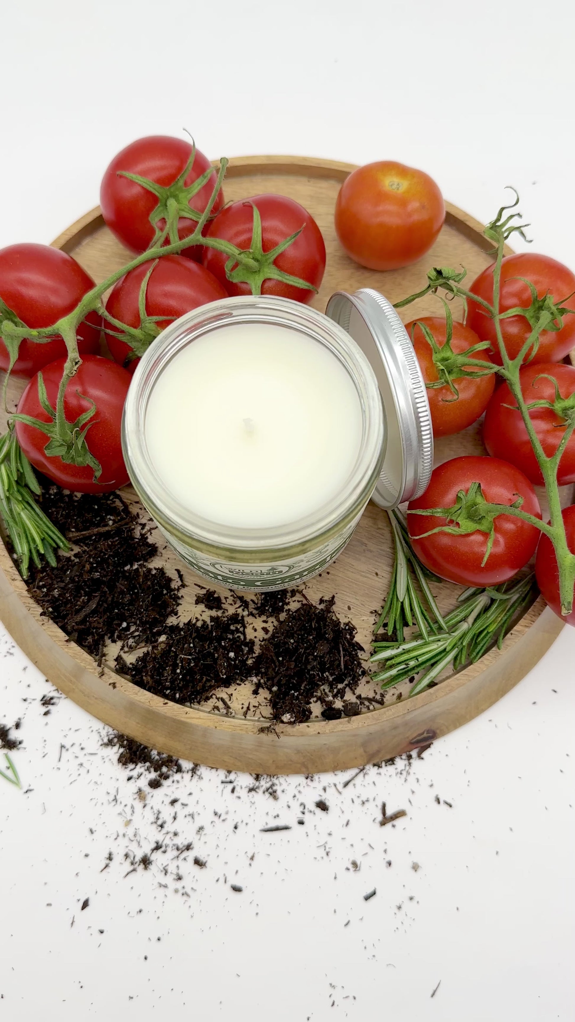 Bring the fresh and vibrant scents of a summer garden into your home with our new candle Tomato Garden. Infused with the fragrant aroma of heirloom tomato plants, the herbaceous fragrance of rosemary, and the earthy scent of garden soil, this candle captures the essence of a summer morning spent in the garden.