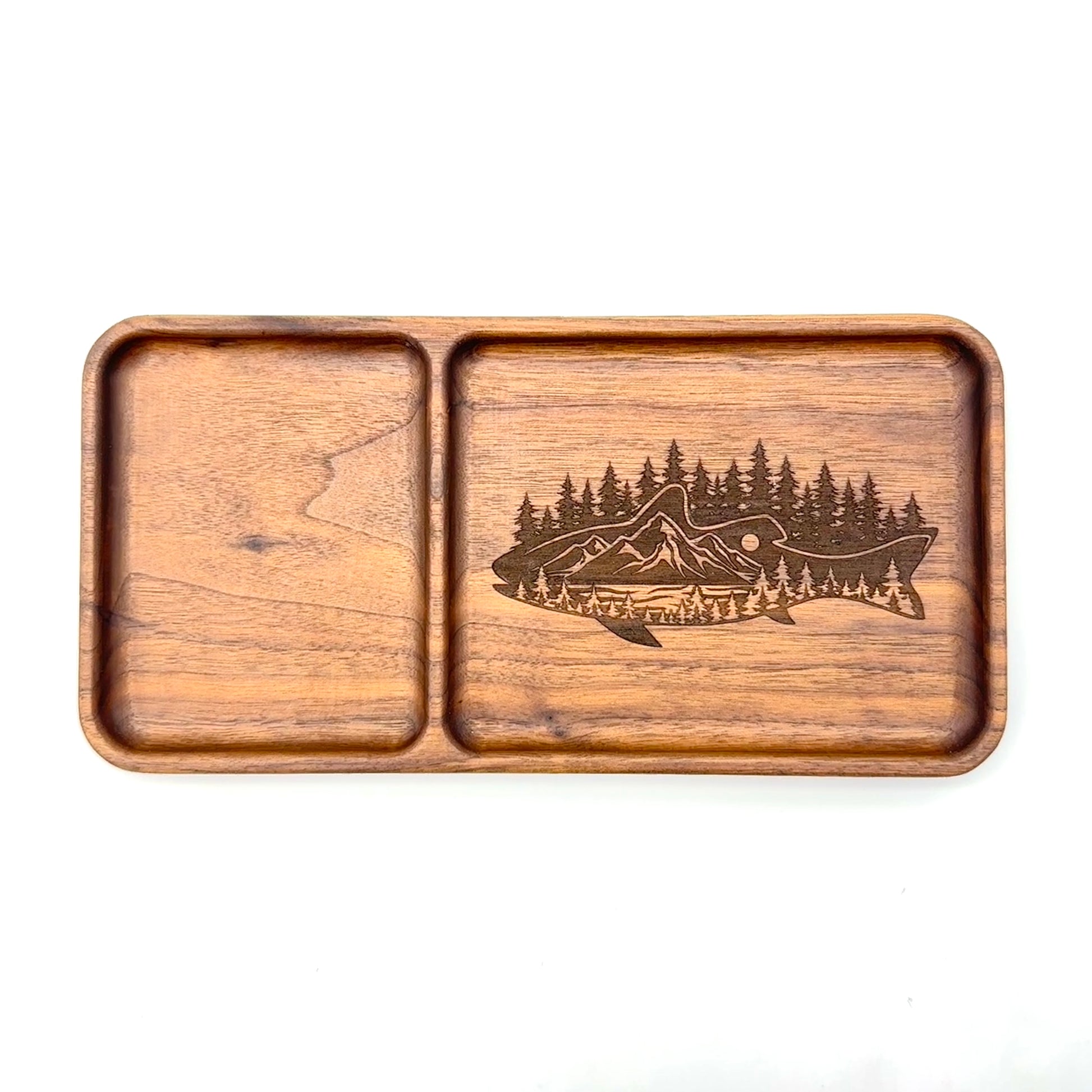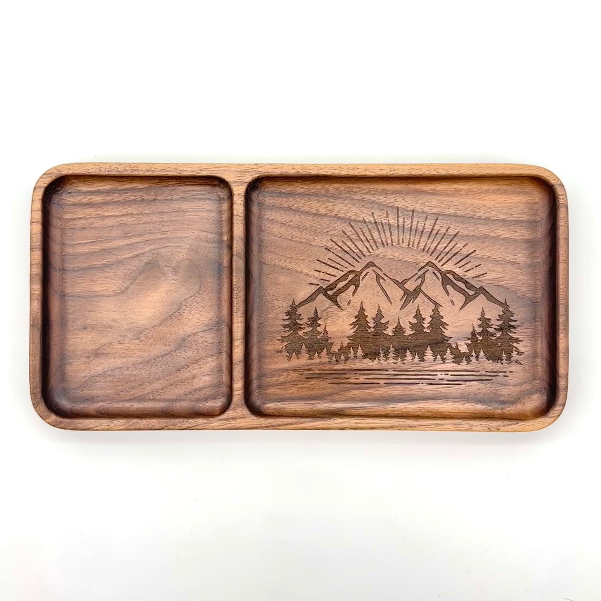 Valet Tray (Large) | Walnut/Cherry Wood | Handcrafted, Laser Etched Design | 5x10